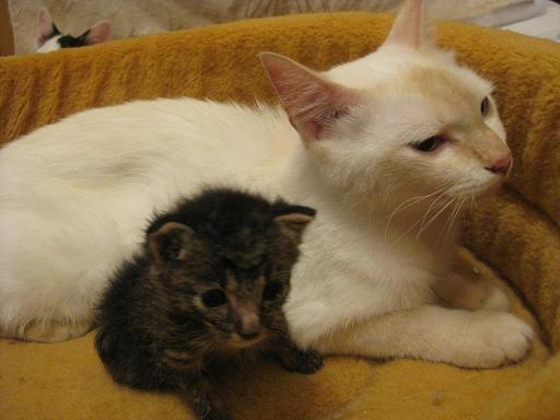 こんなに小さい子猫を育てるのは初めてで不安だらけでしたが、季節が夏で保温が楽だったこと、保護する直前まで母猫と一緒だったらしいこと、乳母役みるくの存在など、好条件が揃っていたのが幸いしました。