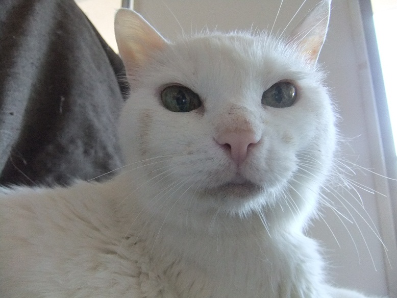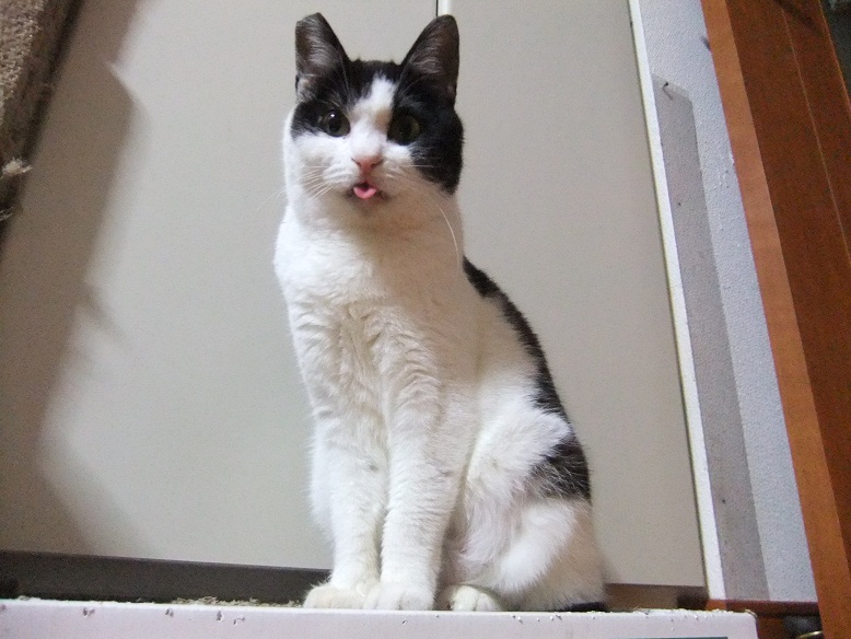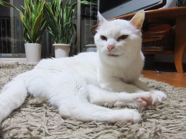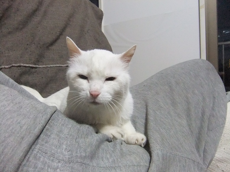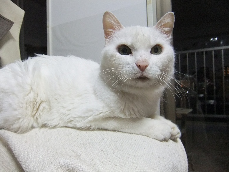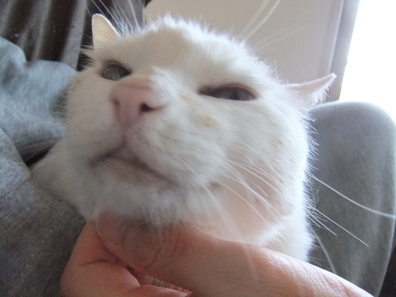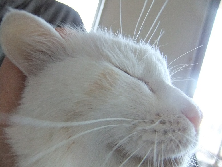前足を伸ばし、肉球を私の唇に当ててモミモミしてきた志乃ちゃん