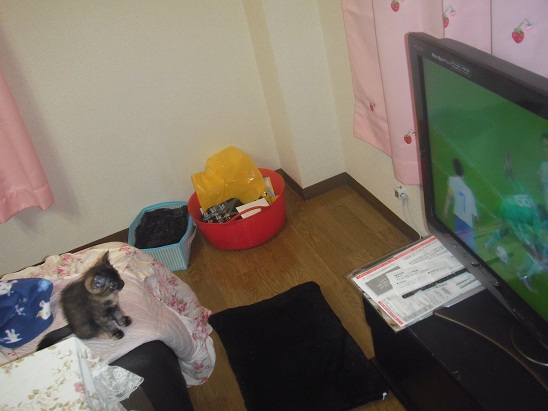 わさびちゃんがおもちゃで遊び始めると、はる君は遠慮して
