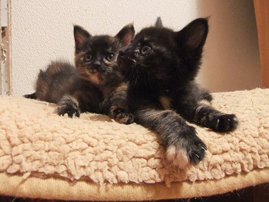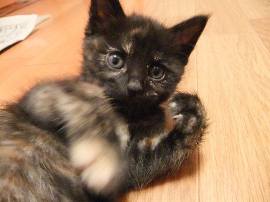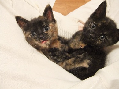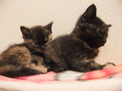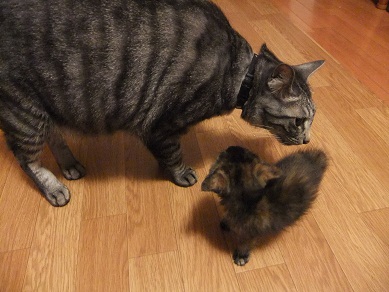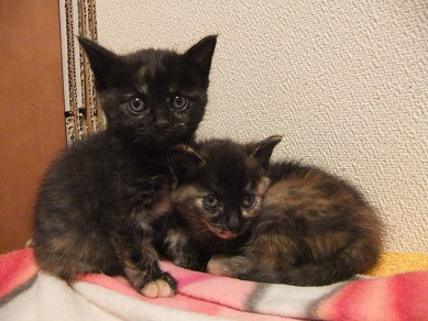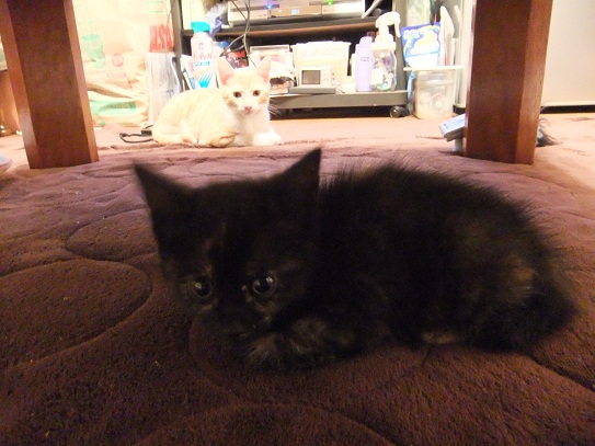 手の平サイズだった保護時 おくてで気弱な子だったのが 茶目っ気たっぷりなおてんば娘になってきたフィガロ 優しい里親さんのお宅で、トライアルに入りました♪ 「良縁ゲットにゃ♪」 里親さんちには、2か月年上の元気いっぱいな「はる君」がいます。 初顔合わせ時、微妙な距離を保ちつつ興味津津でフィガロを見守る、はる君。 仲良し兄妹になれるといいね^^