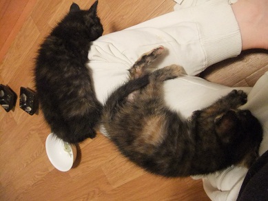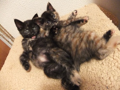 いつもじゃれあってる2匹 起きている間じゅう、遊んでます 遊んでゴハン食べて、遊んでトイレして、遊んでおねんね 楽しい毎日♪