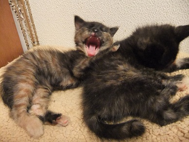 下痢も治って絶好調の2匹 「もうウンチ臭くない?」 遊び方も日に日に激しくなってきました