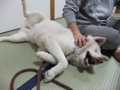 ちょこっとうれション(汗 なでると、おなかをおっぴろげ。