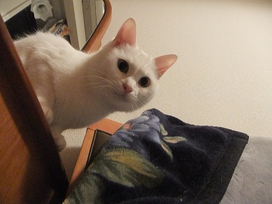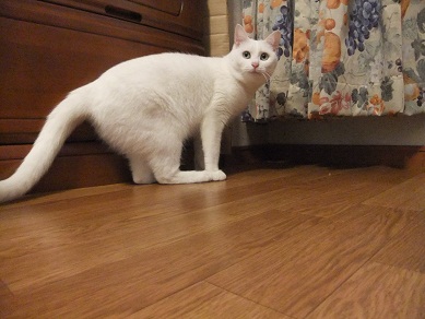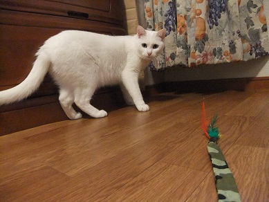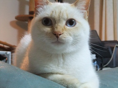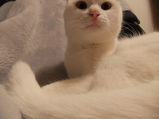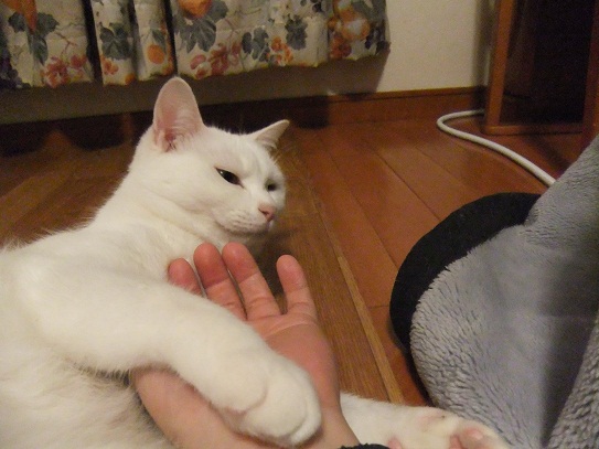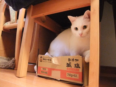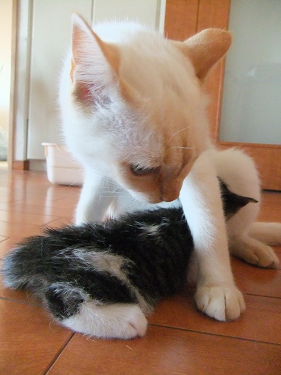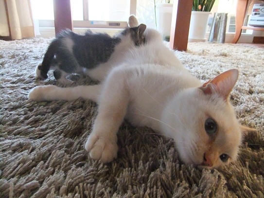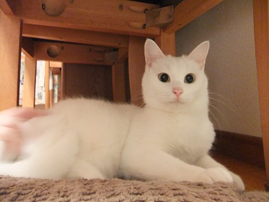 この後、テーブルの上に置いた豆を倒して、本当ににゃんこ