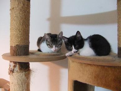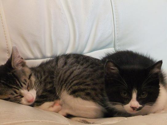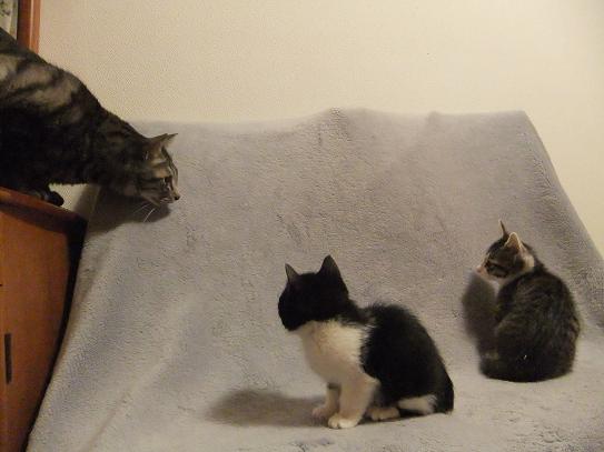 兄ちゃん(猫)や 姉ちゃん(犬)に囲まれ 社会勉強をつんだ2匹は ゴハンのおねだりは「しつこく」とか 遊んで欲しいときは「可愛く」など 色々習得しました