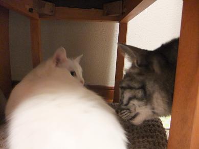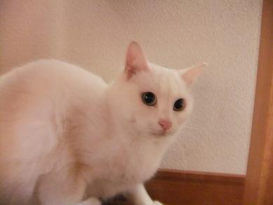 「ん?」 「みるくじゃない??」 そうだよ、新入りちゃんですよ 多頭飼育崩壊の現場からボラさんが救出、縁あって我が家で 里親探しをすることになりました 粉雪みたいな真っ白、1歳半の女の子です