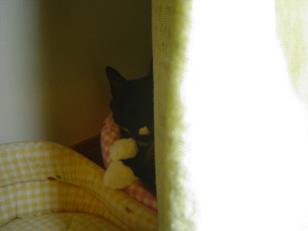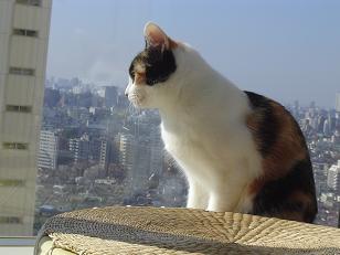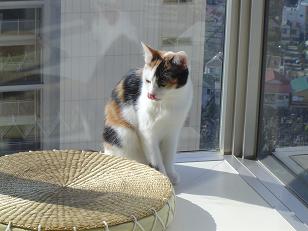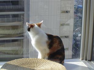 天気がいいね。何見てるのかな? 真剣に外を見つめるよもぎ。 その視線の先は墓地。 おいしそうなものは見えなかったよー。 ペロン。