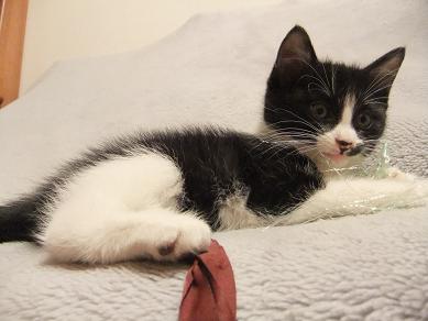 ゴエモンによく似た残念柄?(笑)な仔猫「小鉄」 体はかなり薄汚れていたものの、まるまるとして健康そのもの。 野良生活の母猫からはぐれたばかりだったのかもしれません。 小さい体で必死に泣いて、自分の運命を大きく変えた小鉄。 この先には、温かくて優しい未来が待っているよ。