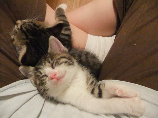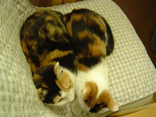 お姉ちゃんとよもぎです。茶がオレンジっぽいのが