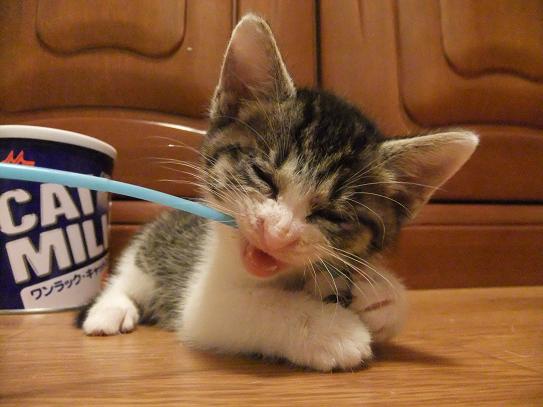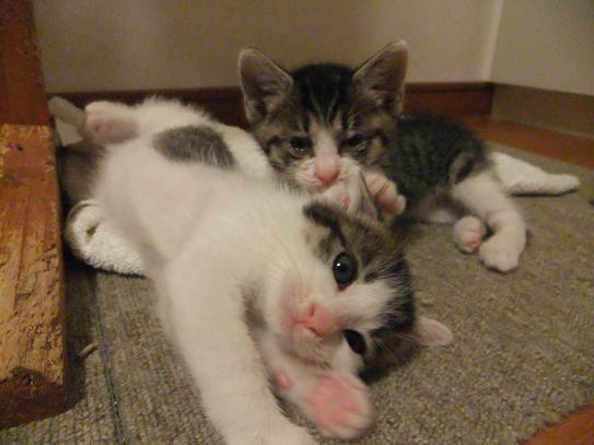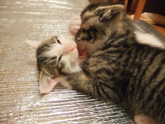 豆ちゃん米ちゃんの顔に噛み付いては「イヤー」と泣かせ