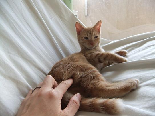 小茶ほど、触られるのが好きな子猫は初めて。 手を伸ばしただけで、ゴロゴロスイッチON。 人の膝の上で寝るのが好き。人の股の間で寝るのが好き。 抱っこされるのが好き。話しかけられるのが好き。
