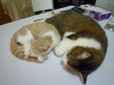 ハンナ改め「なな」ちゃんは、先住猫のアトム君とすぐに仲良しこよし。