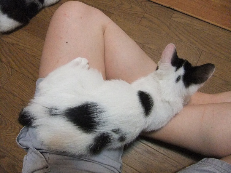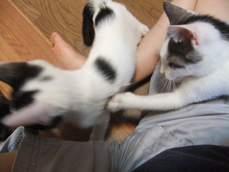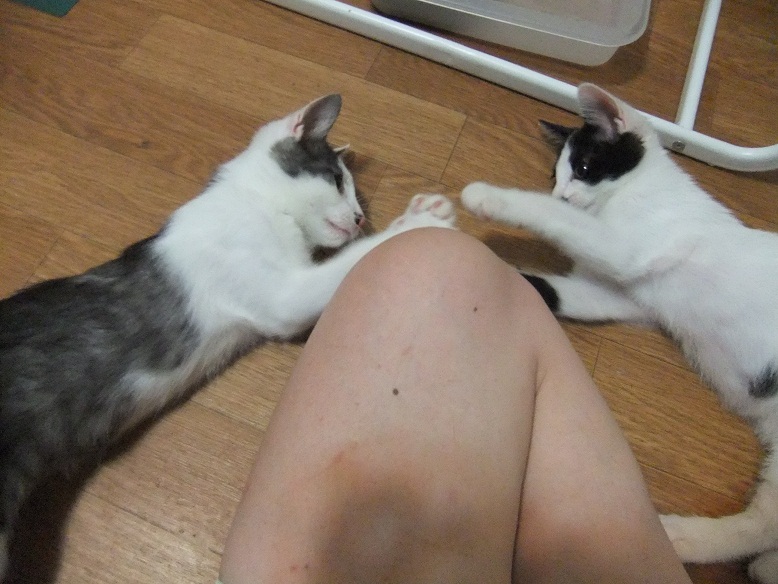 やたら人の膝のまわりで遊びたがる、ひじき&こぶ