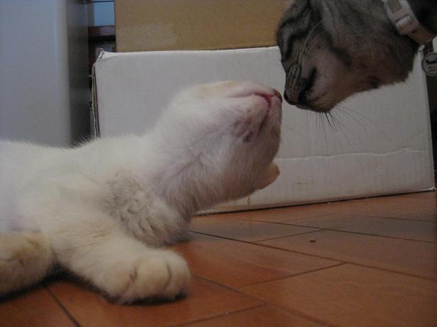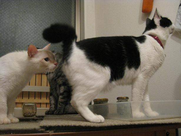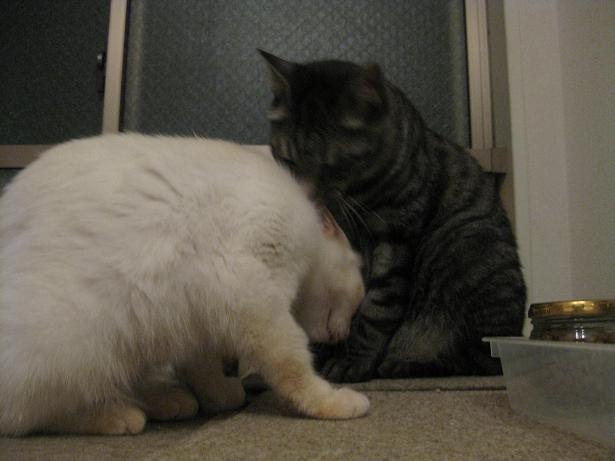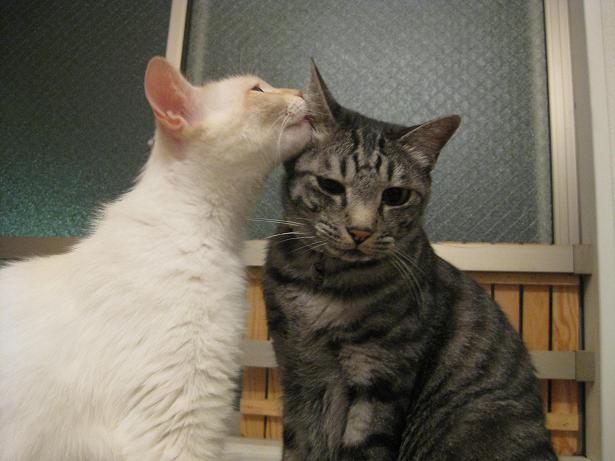 あずきちゃんは、もみじちゃんの頭をよく舐めてあげるのだけど、毛の流れと逆に舐めてしまうので、もみじちゃんは必ずやりなおすそうです(笑)