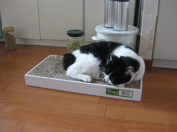 ←想定外で捕まえた子。麻酔注射後に去勢済みと判明。間違えてごめんね、ふてくされてます。