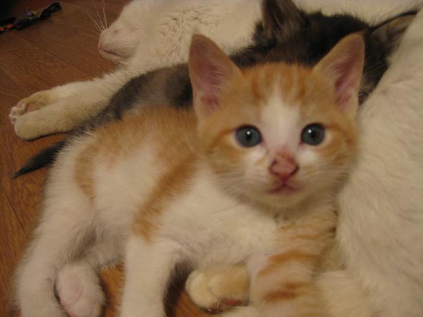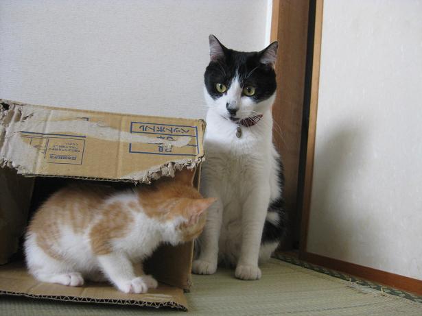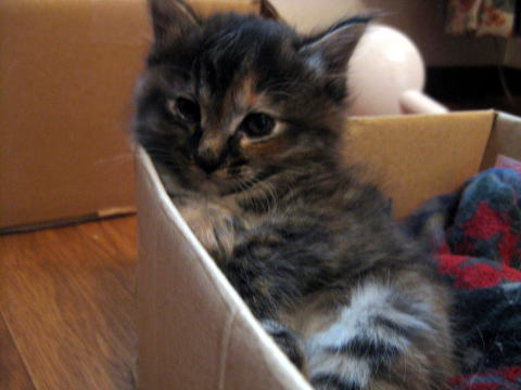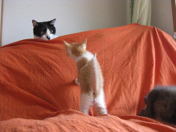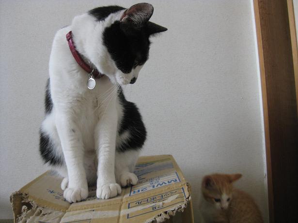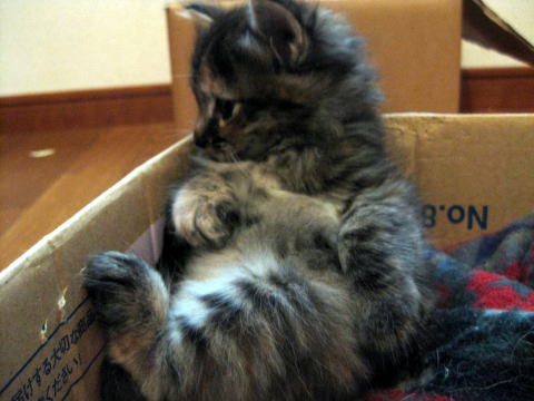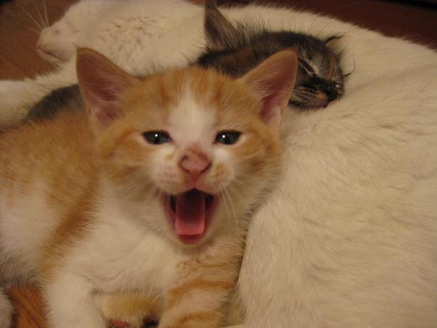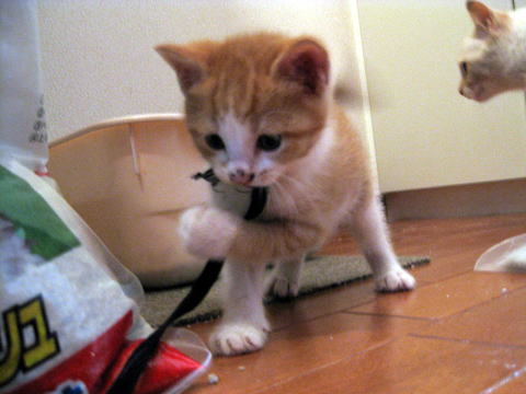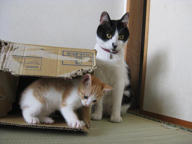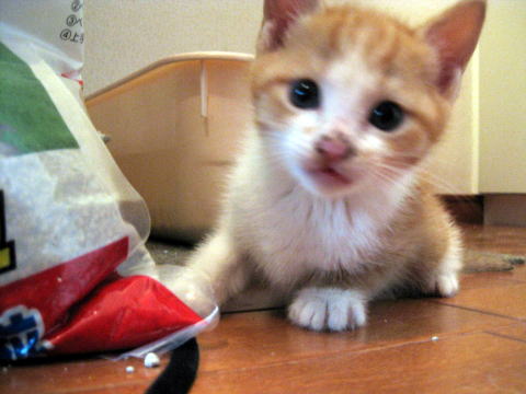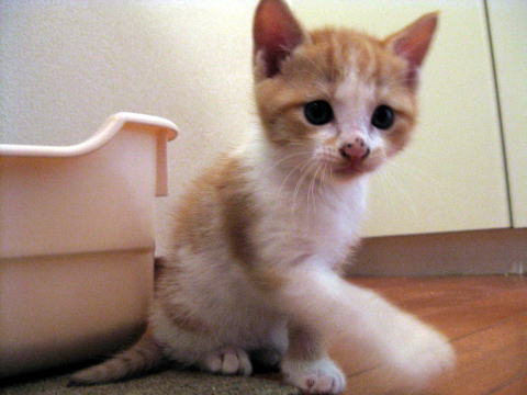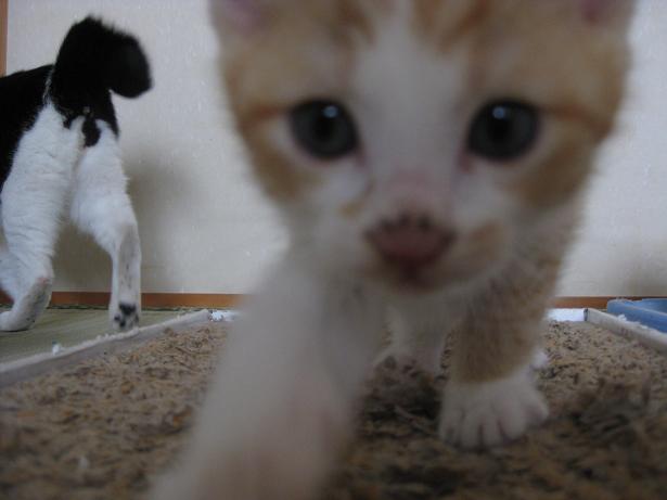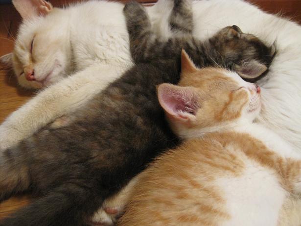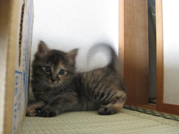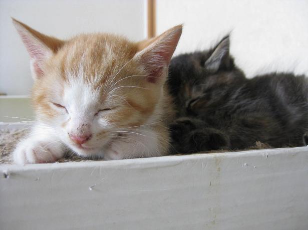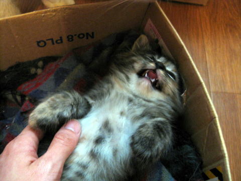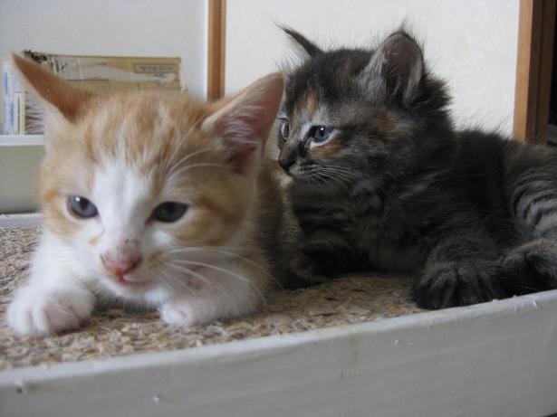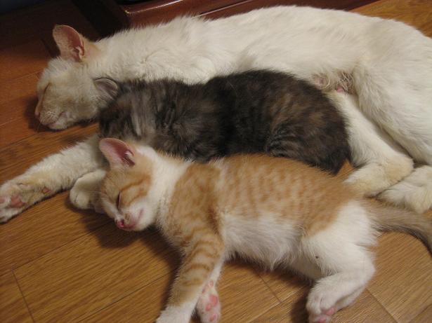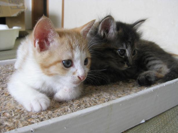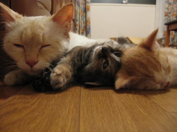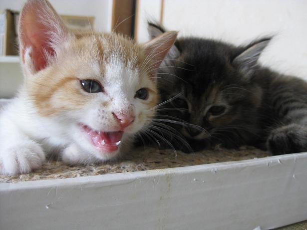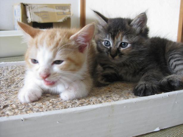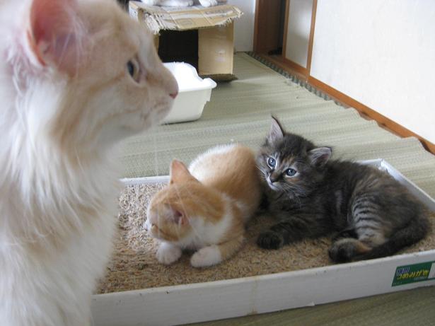 保護して数日後、お母さん猫みるくの具合が悪くなったため (順調に回復、現在は元気です) 子猫たちは別の部屋にお引越しです 「君たち、聞いてちょうだい」 「ふぁ~、なあに?」 「今日でおっぱいバイバイね」 「そんなの、イヤだもん」 「いやー」 子猫たちは可哀想ですが、一緒にいては、みるくの体がもちません。 強制的におっぱい卒業です。