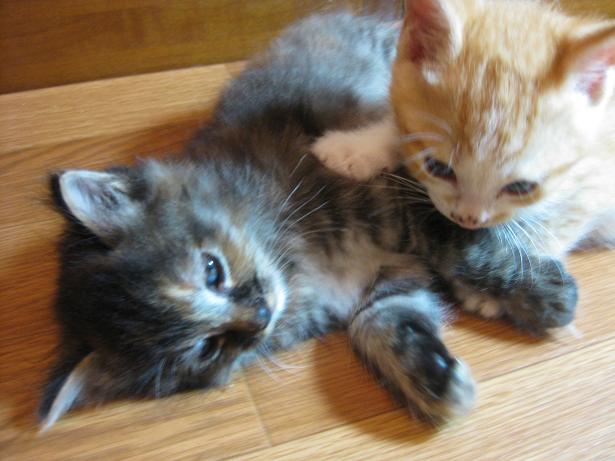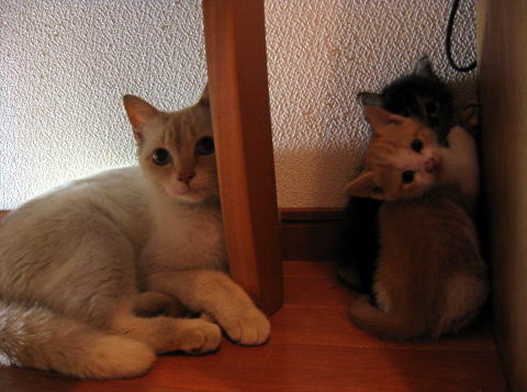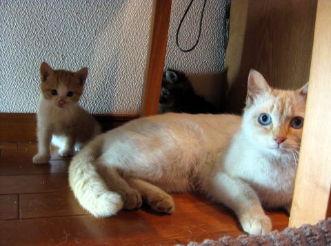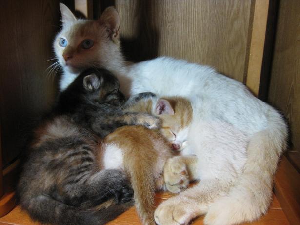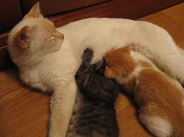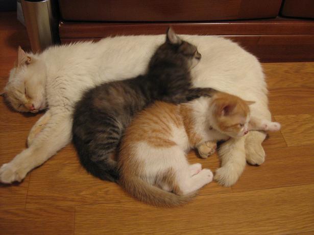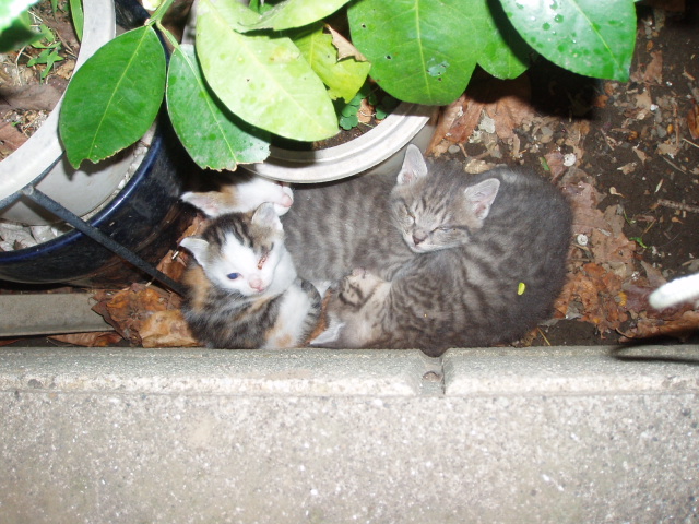 2匹は、1ヶ月ちょっと前に出産。子猫たちは一足先にかっくんが保護し、成長を見て
