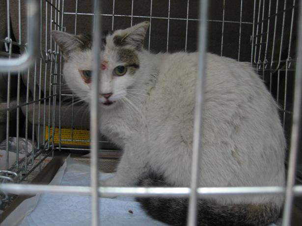 おでこの傷は、発情期の喧嘩から?化膿止めの注射をしていただきましたが、継続的な治療が本当は必要です。
