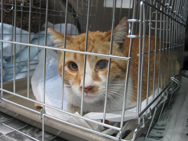 偶然捕獲器に入ってきたオス猫ちゃん。発情期であちこちに出没していたらしい。