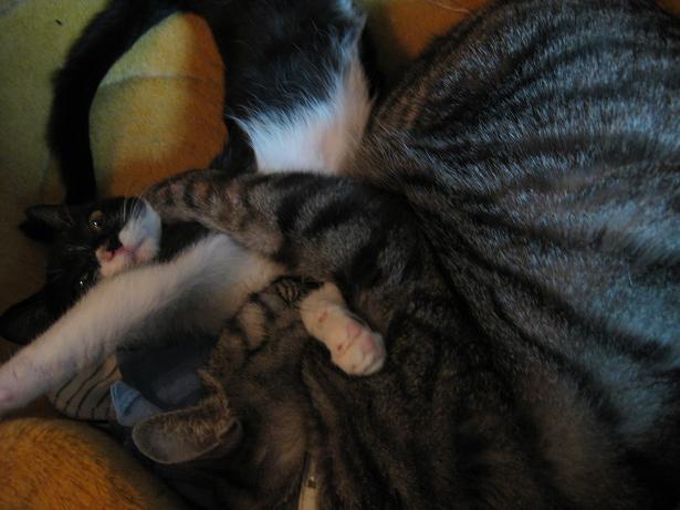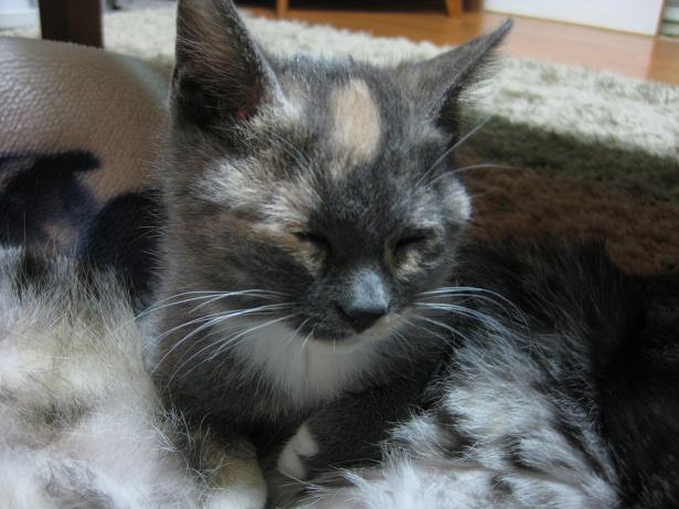 恐いものしらずでマイペースなエマは、来て早々レオンのおなかでおねんねする大物ぶり