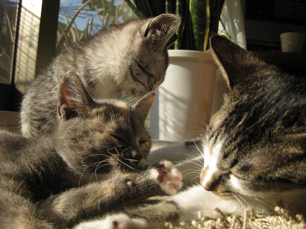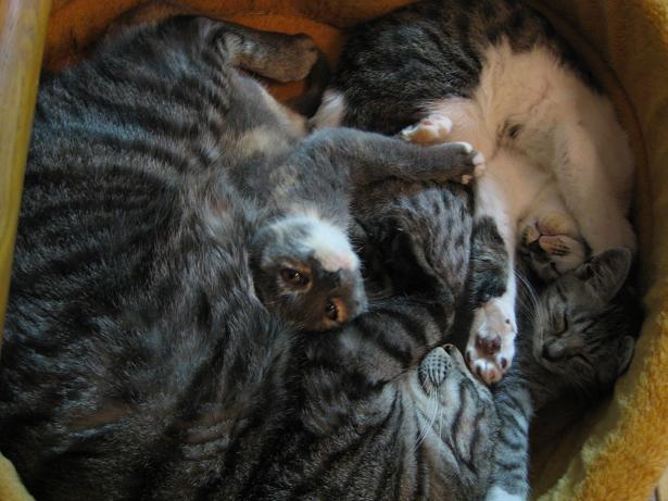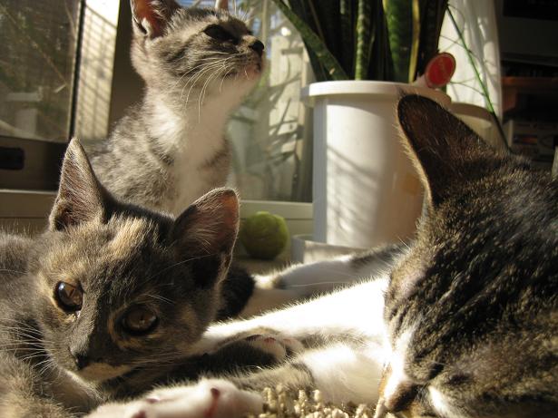 兄ちゃん猫に囲まれスクスク成長しているエマとサラ