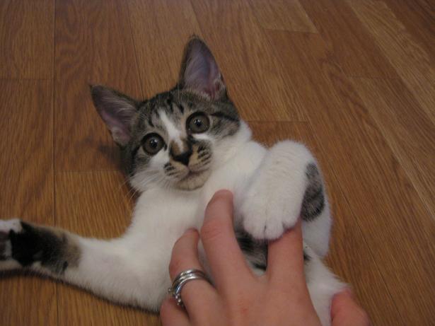 暖かい寝床、自動的にでてくるご飯、遊び相手のいる環境に、喜びをひしひしと感じているようで、急激にテンションあがってきています(笑)。