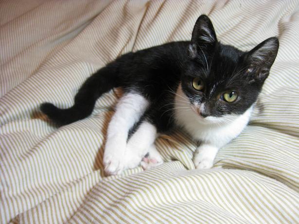 ひどい猫風邪をひいているところを保護され、懸命の世話の甲斐あり今はくしゃみと涙目が残る程度です。