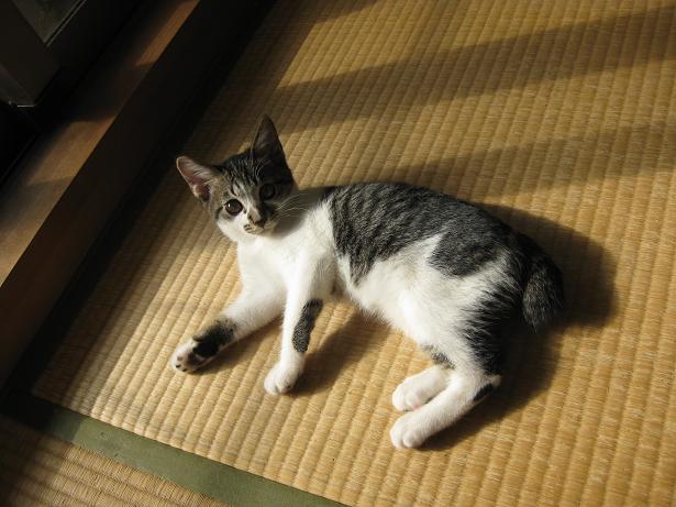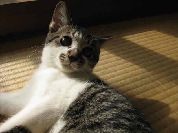 寒空の下、母猫とはぐれ、ひもじく震える日々を過ごしていただろうに、猫風邪にもならず快食・快便とっても健康優良児なつくし。