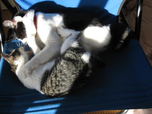 日当たり抜群のデッキチェアは猫たちお気に入りの昼寝場所