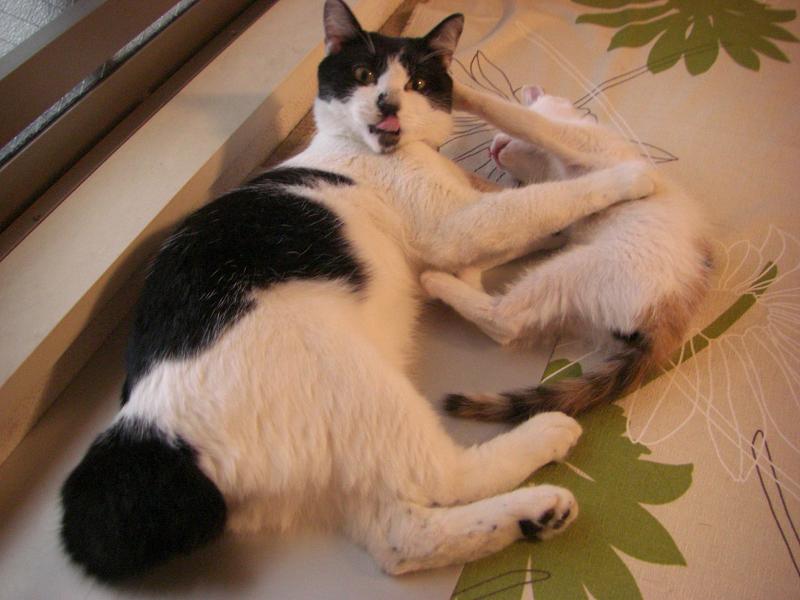 猫パンチされても怒らず毛づくろいしてあげたレオンも