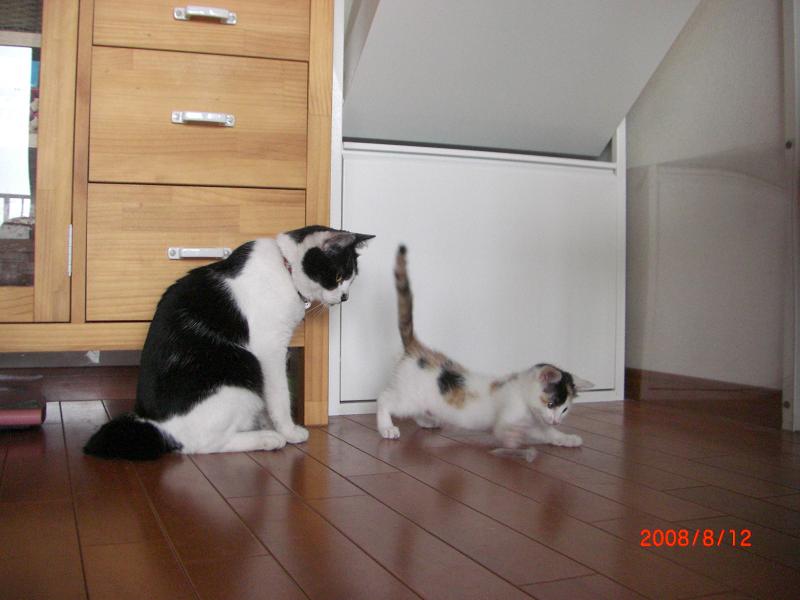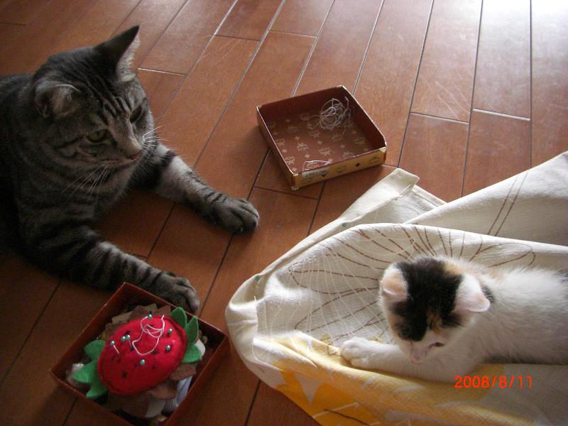 くるみが可愛くてしょうがないゴエモン。なんとか一緒に遊ぼうとそばをウロウロしてみたり。