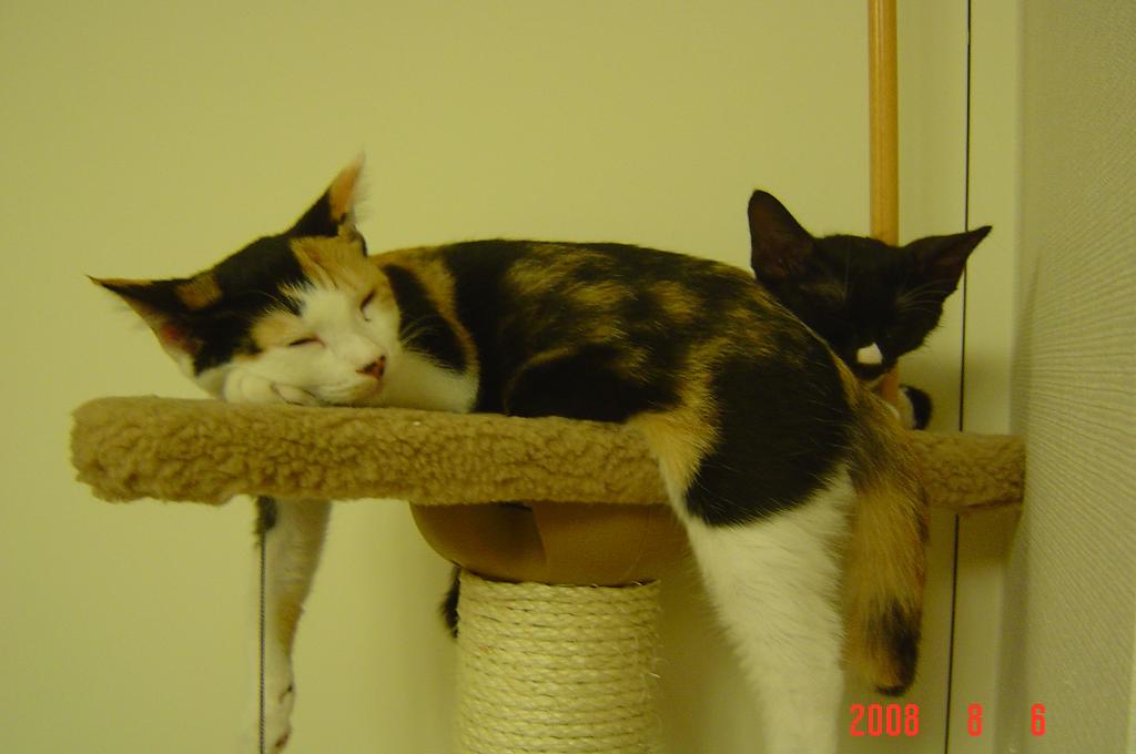 保護時、おっぱい恋しさからお互いの体を吸いあい、皮膚がただれていた為、別々のボラさんちで薬浴などのケアをされてきましたが、状態が良くなり2匹揃って我が家に移動してきました。