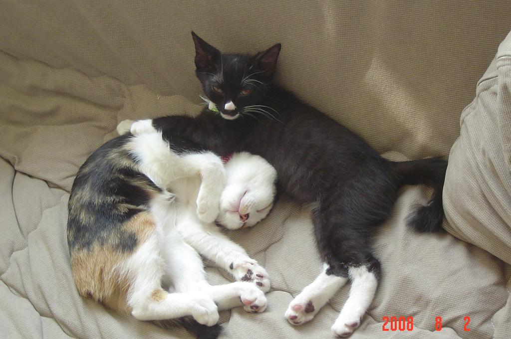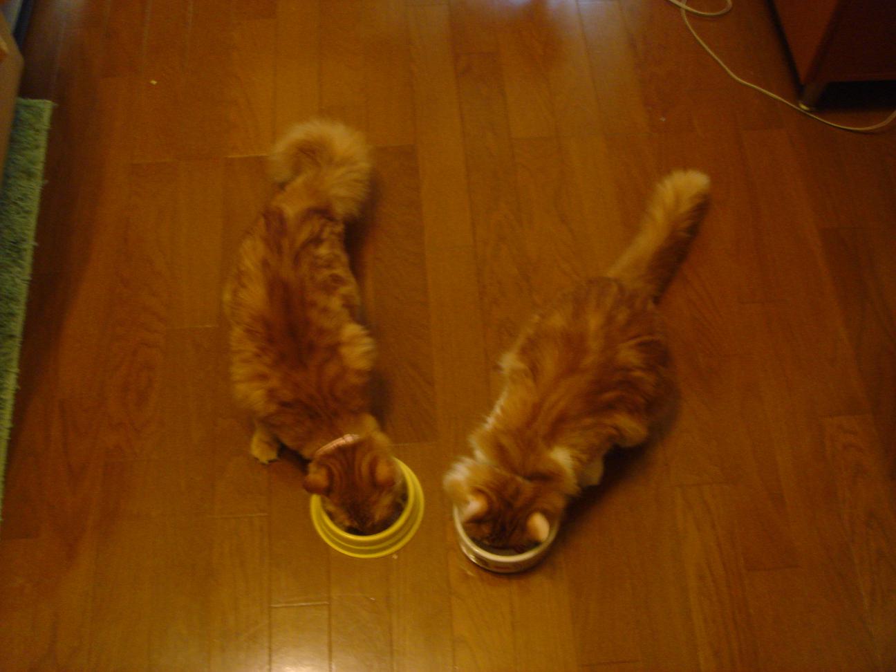 妹分ののんちゃんも茶々丸も食欲旺盛。食べてもあまり太らないのんちゃんに対し、食べた分だけ重くなる茶々丸。ベスト体重4.1-4.2kをキープすべく、暑い夏も追いかけっこなどして元気に運動しています