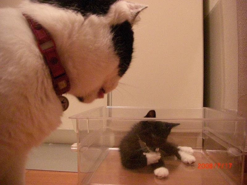 里親様のお宅には、年の近い三毛猫ちゃんがいるので、