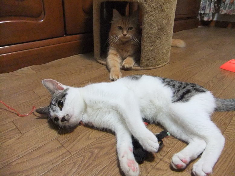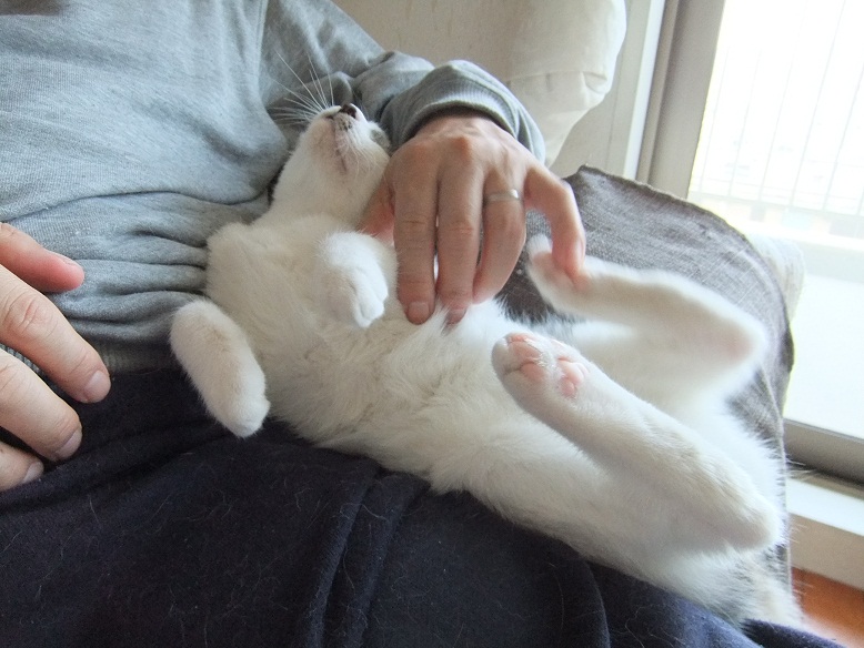ってお腹を見せようと必死に甘えるそぶり