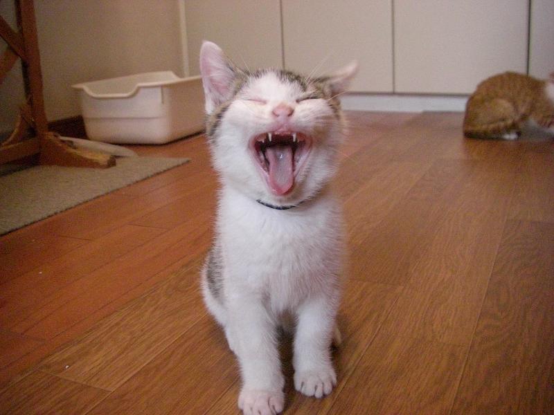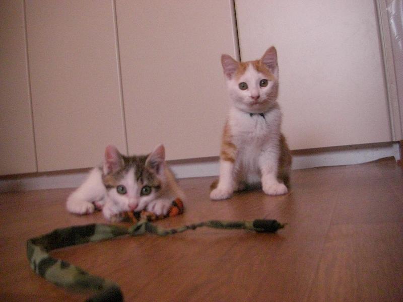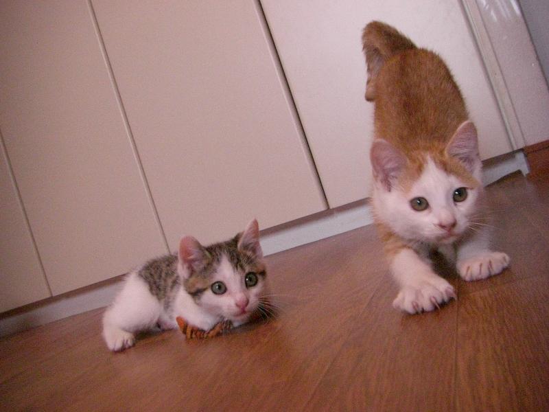 おもちゃに飛びつく前に、「カカカカ・・」と、変声をだすタラちゃん。保護当初弱々しかった動きも今では一回り大きいプリンと互角に取っ組み合いができるまでに。おかげさまで、近々お試し生活入りが決まりました。