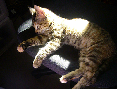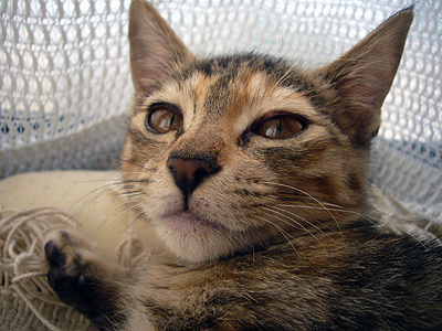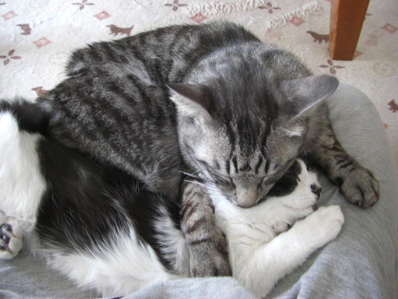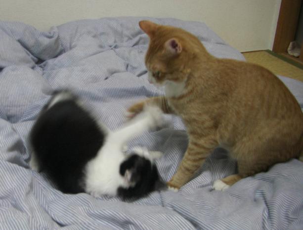キジトラ柄好きなご主人が、えちゅに一目惚れのぞっこん(笑)で、かまいたくて仕方がないのを、奥様が上手にえちゅをフォロー。その様子が「年頃の娘と父母の図」という感じにうつって、ちょっと笑ってしまいました。