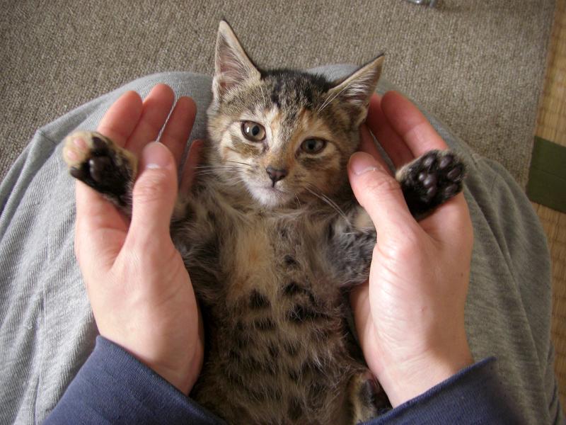 我が家で保護していた頃は、警戒心が強く甘えるのも下手っぴだったのに、