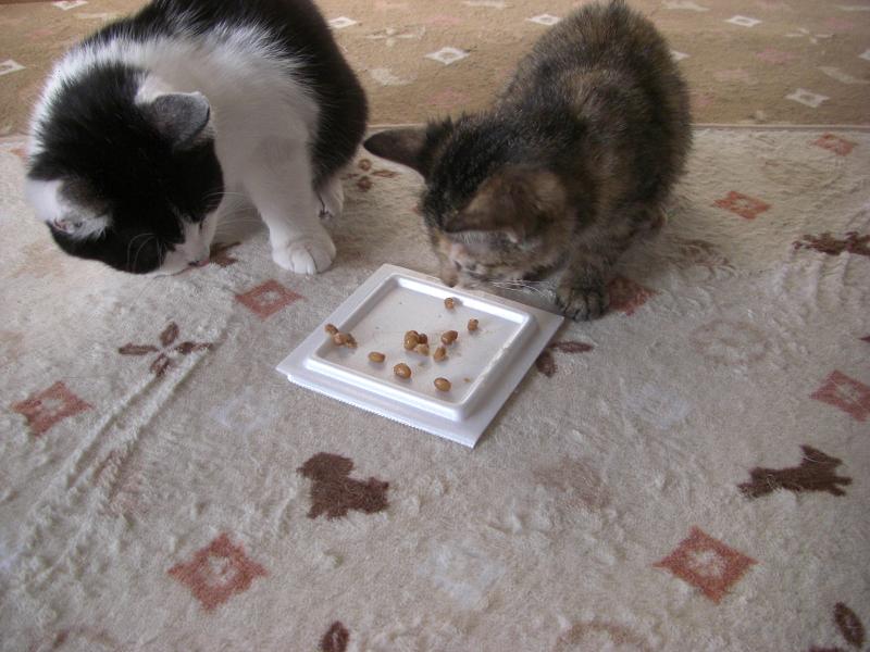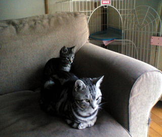 我が家に来て数日で、まいるの鼻先を前足でチョンチョン。