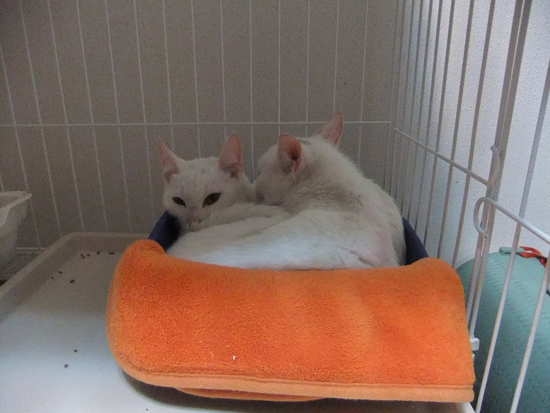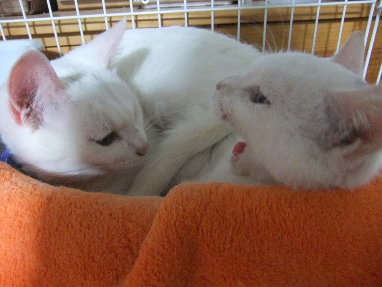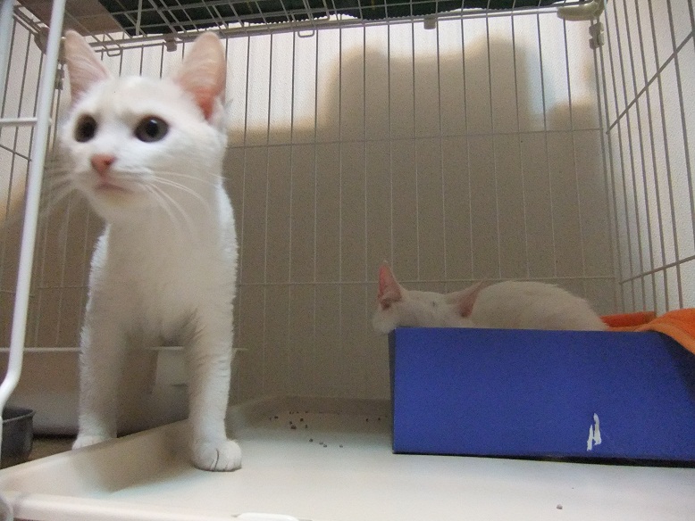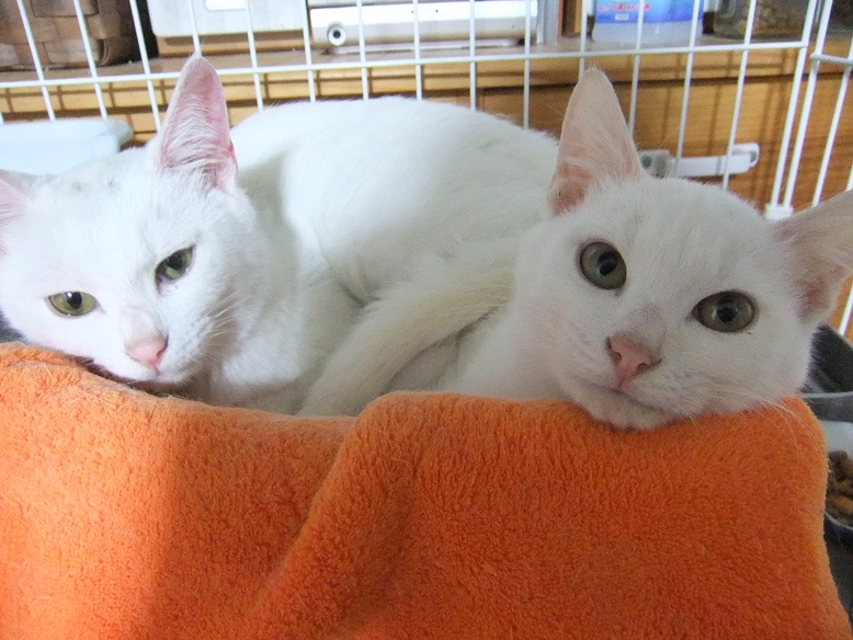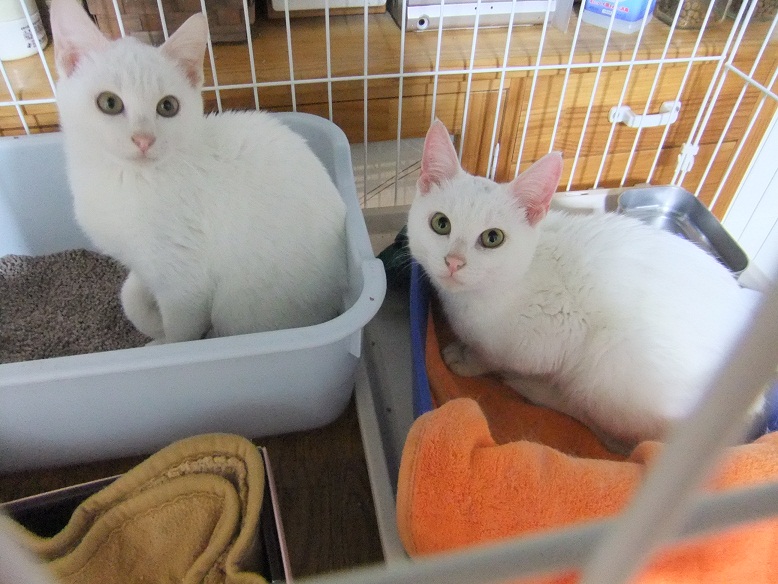 生後3ヶ月超の兄弟白猫マシュ・マロです
