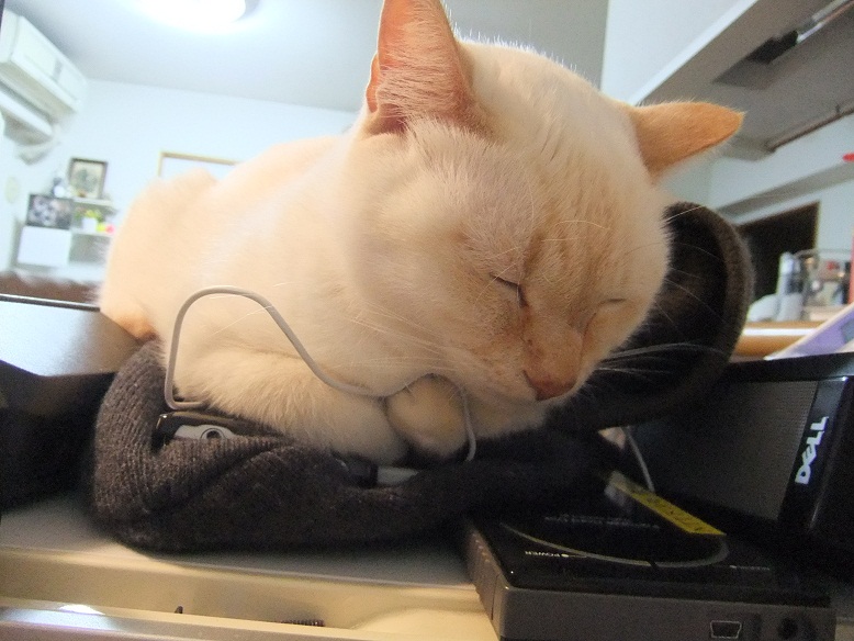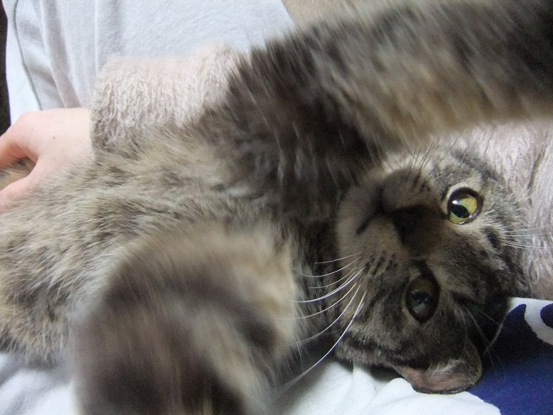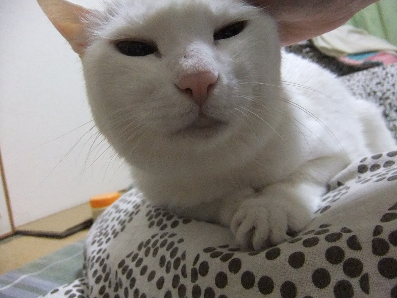ゴロゴロ言いながら夫の頭にお尻をつけて落ち着きます