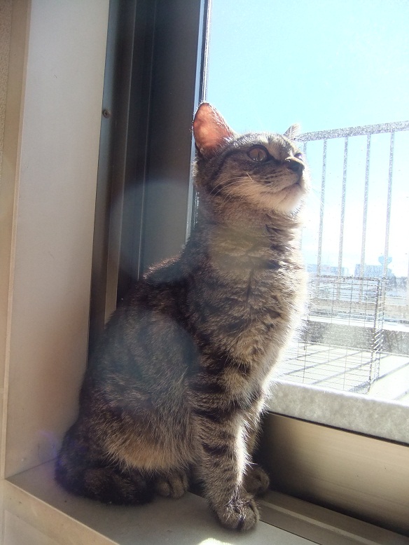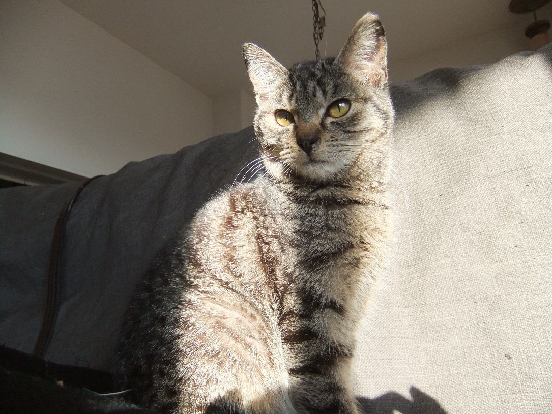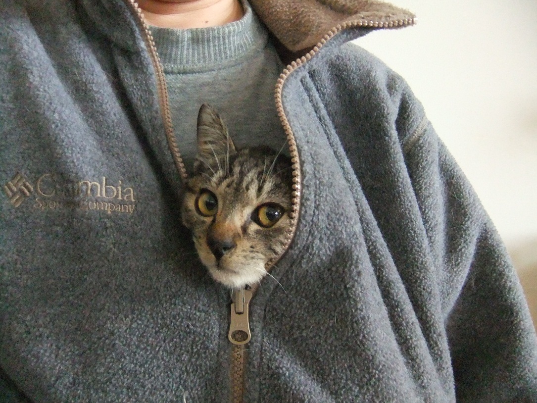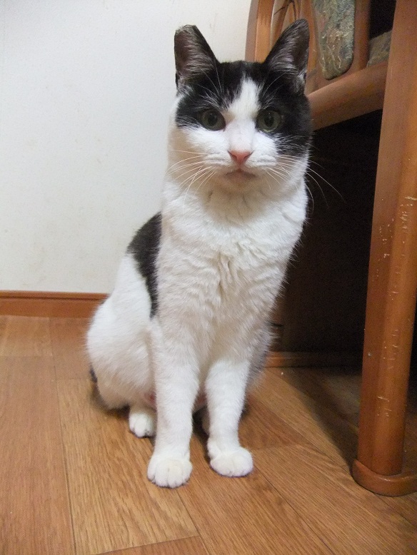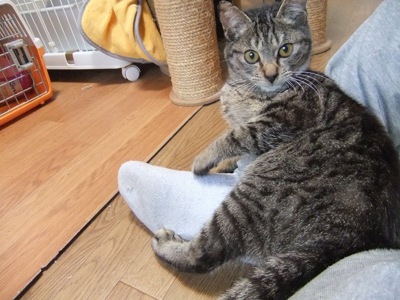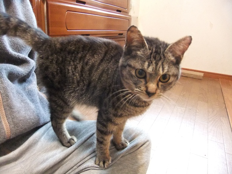 保護した時は、ひどい猫風邪だったヒョウ 風邪は早くに治り、元気になったものの 食が細くチョコチョコ食いのため、まだまだ痩せっぽち 座るとすぐに膝の上に乗ってくる甘えん坊さん あれ、座ってもヒョウ来ないぞ?・・・って、そんなとこにいたの^^ 「呼んだ?」