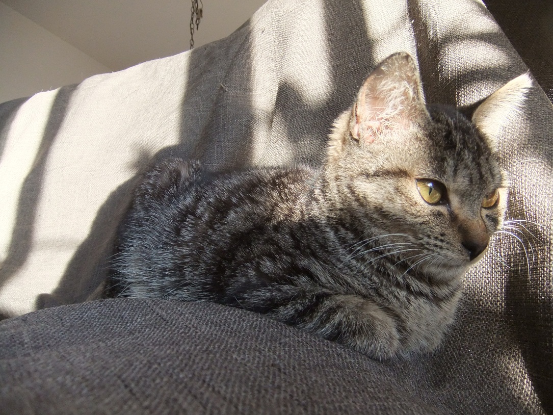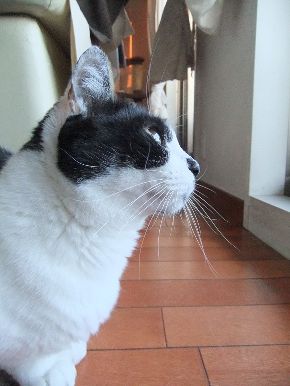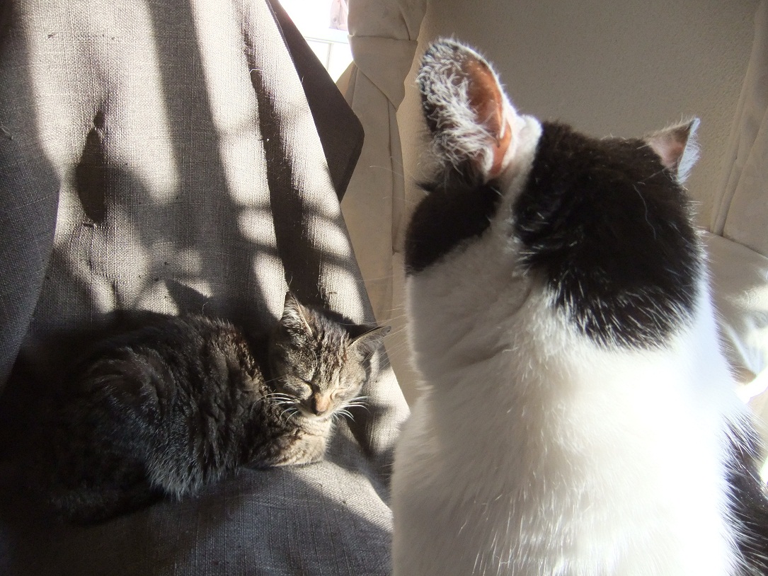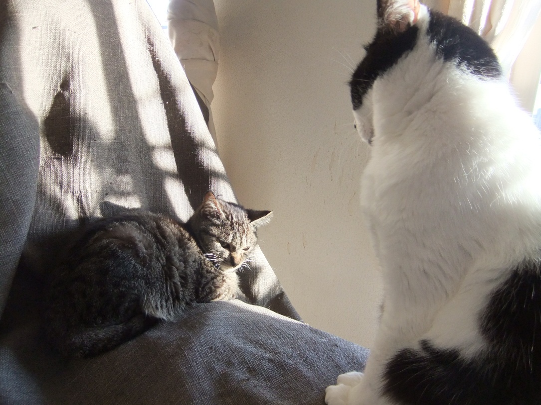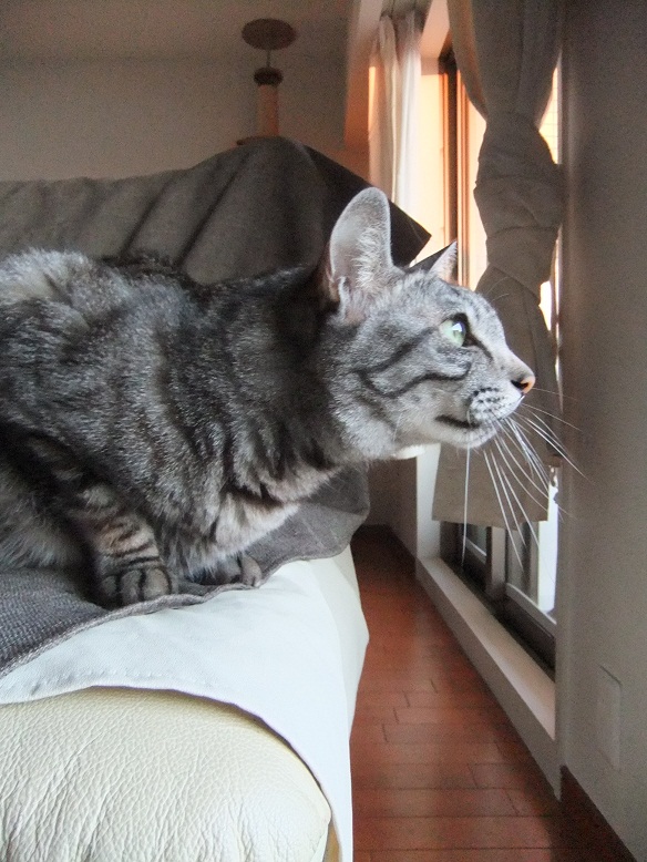 保護した時は、ひどい猫風邪だったヒョウ 風邪は早くに治り、元気になったものの 食が細くチョコチョコ食いのため、まだまだ痩せっぽち 座るとすぐに膝の上に乗ってくる甘えん坊さん あれ、座ってもヒョウ来ないぞ?・・・って、そんなとこにいたの^^ 「呼んだ?」