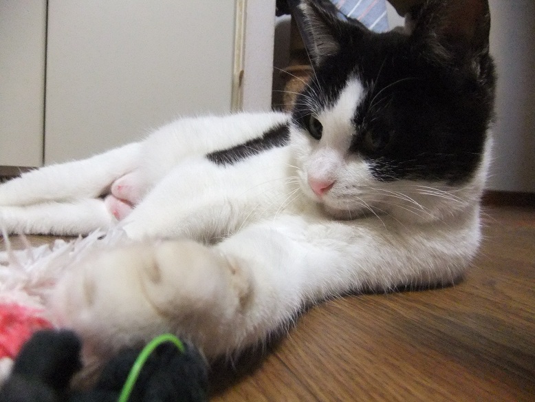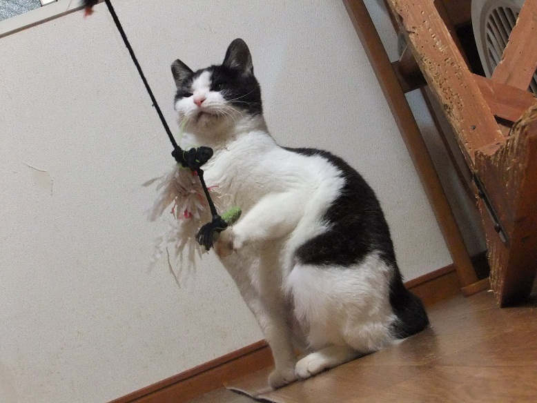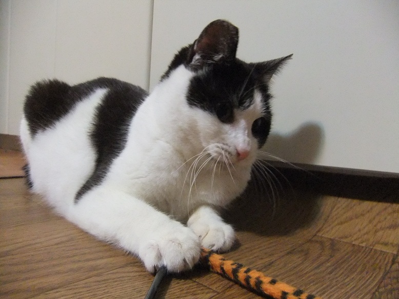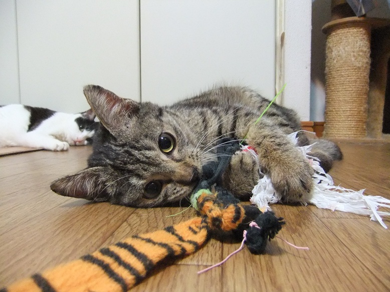 おもちゃへの食いつき、すこぶる良く 飽きずに遊び続け、スタミナも十分 3ヶ月のヒョウよりも子猫みたいなのに 5歳以上いってると思われる志乃ちゃん 年増説の根拠となっているのが、こちら 前歯が上も下もなくて舌ペロリ 年増オンナの舌ペロリ、可愛いっしょ~(^○^)
