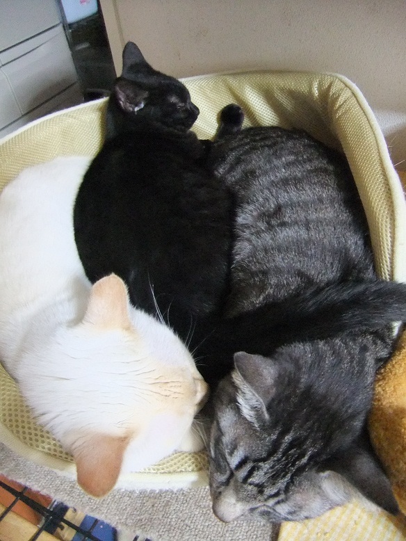 5ヶ月間、こんな猫だらけの環境で 育ったアルルが遂に卒業です 人に対してはひどい怖がりだったけど 猫に対してはとても自然体 先輩猫に愛されてきたアルル