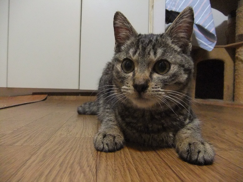 チャリで家に連れ帰る道中も、心細げに泣くだけ
