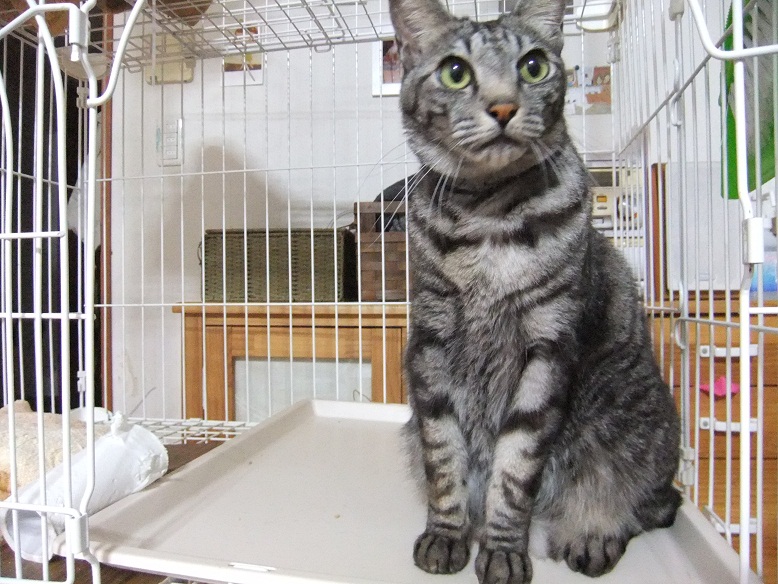 体調戻ってもケージに入り、訴える目で待機してるけど