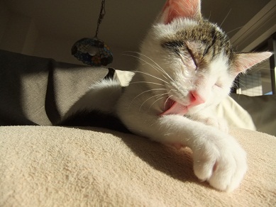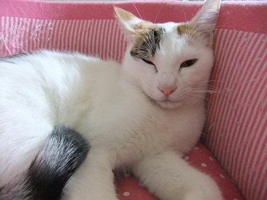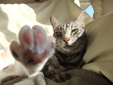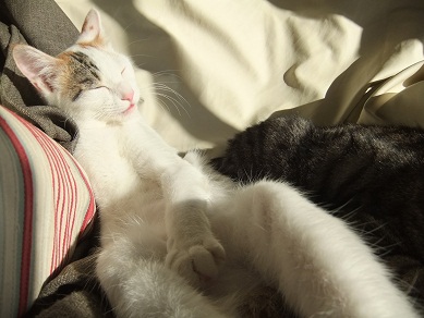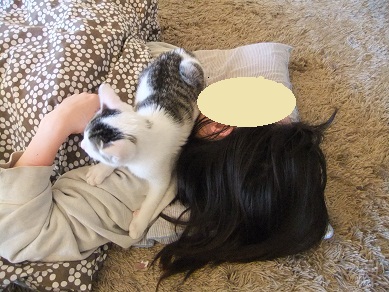 原因は、これ かえでちゃんです レオンの隣でずっとグルーミング ヤキモチ焼かれてるとも知らず、のんきな寝顔です(笑