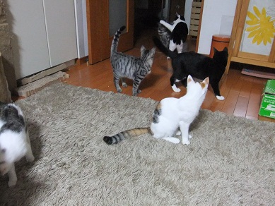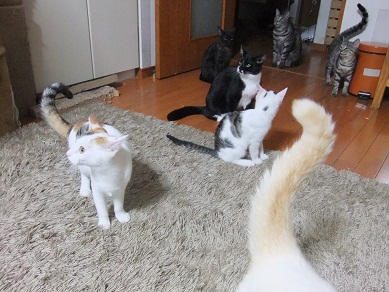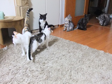 もしかしたらもう撮れなくなるかもと、 里親会の前に、集合撮影に挑戦 1,2,3,4,5,一応揃ってるけど誰もこっち見てくれない はい、こっち見て~♪ どこ見てるのさ(^_^;) けんか勃発してるし