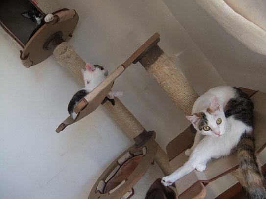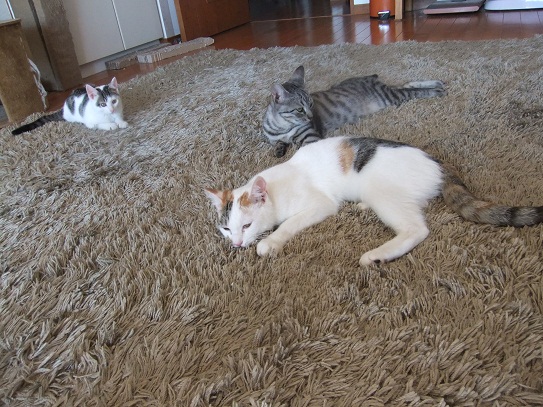 里親会の緊張で、疲れてぐっすり組と 意外に平気だったらしい1匹(笑)